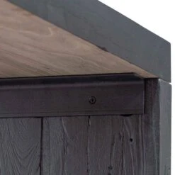 Crafted from recycled elm wood and black elm veneer Tabletop includes a border frame of reclaimed wood on exterior Thick timber legs offering complete stability Strong metal brackets for added structural support and clean finish Product is flat packed, requires two-person assembly, and a power drill Note : The timber used in this range is recycled elm timber. Each handmade piece will naturally have distinctive characteristics such as cracks, splits, and imperfections due to the nature of the wood. Any variations in colour, texture, and pattern are not a fault and should be appreciated.