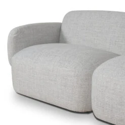 Cloud grey polyester upholstery Durable plywood and solid wood frame Right chaise configuration Foam and fiber blend cushion Web and spring suspension Rounded padded armrests Easily rearrange the sections to fit your space Clean lines and soft curves Rubber legs Soft seat firmness Weight Capacity: 620 kg Product comes fully assembled