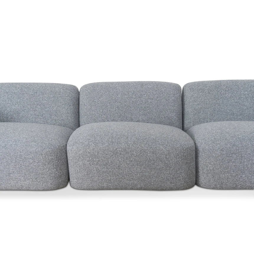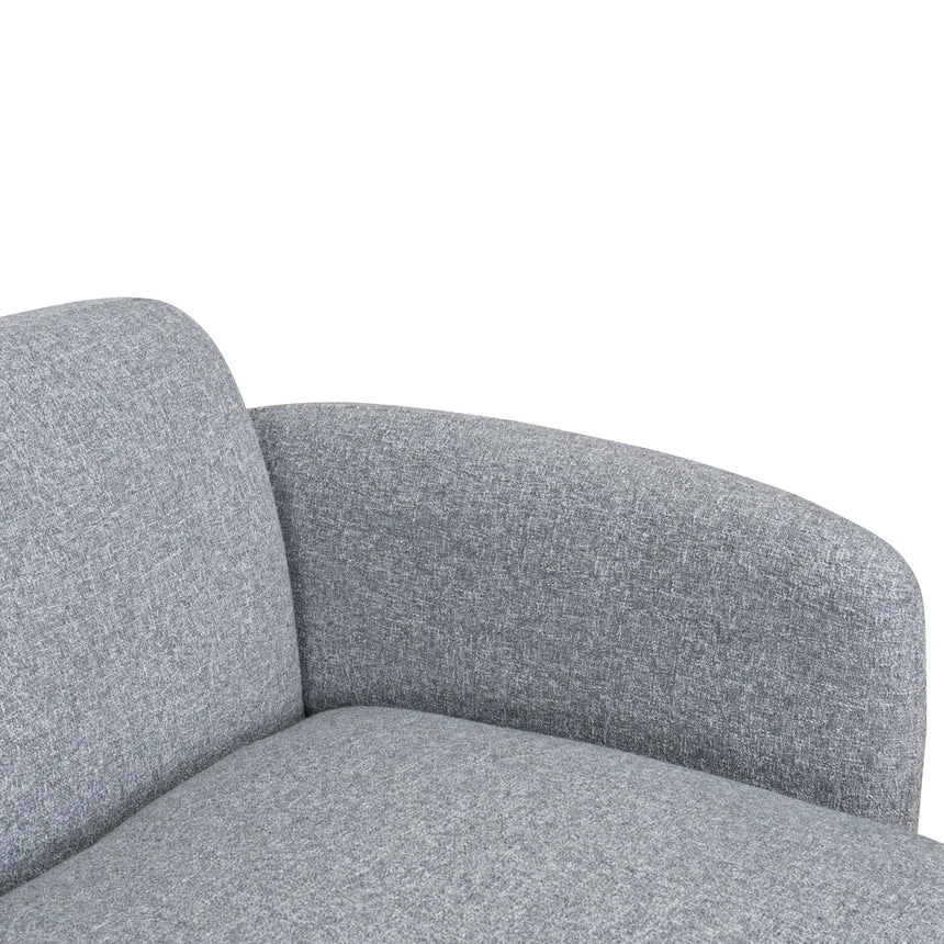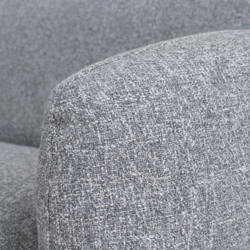 Glacier grey polyester upholstery Plywood and solid wood frame Rubber legs Soft seat firmness Foam and fiber filling Web and spring suspension Subtle texture with a soft feel Versatile design Weight Capacity: 620 kg Product comes fully assembled