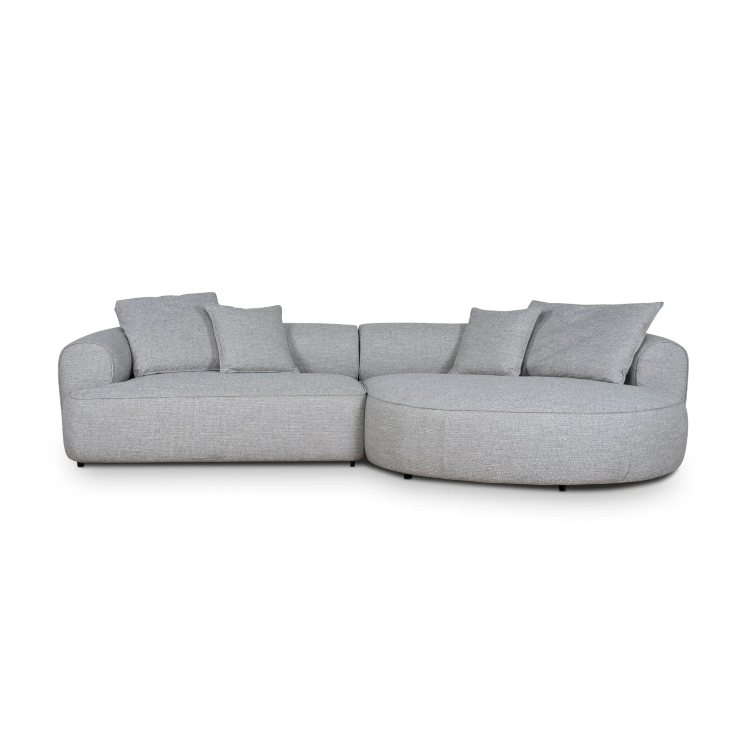 Chrome Grey polyester upholstery Pine wood frame construction and beech wood legs Web and spring suspension with Foam filling Soft-medium seat firmness Right-side chaise Weight Capacity: 300 kg Minor Assembly Required