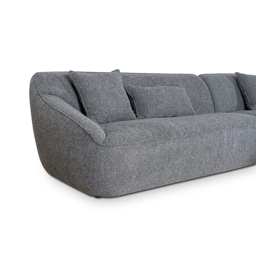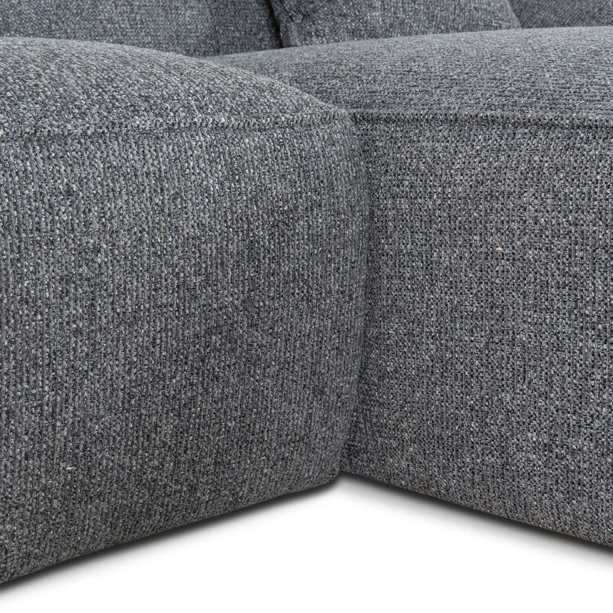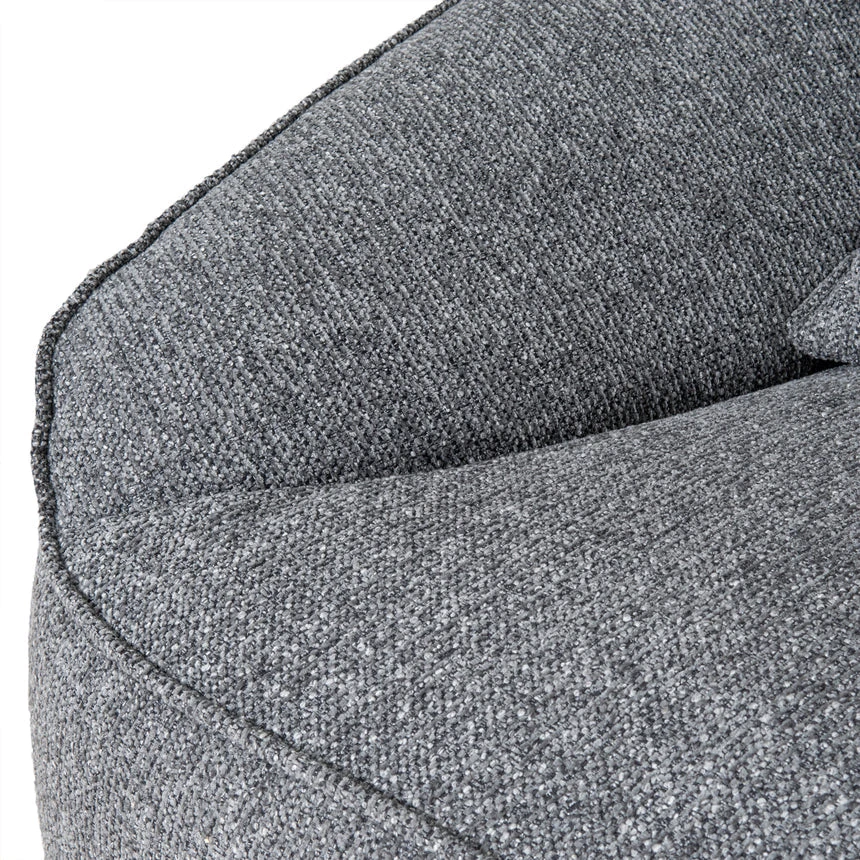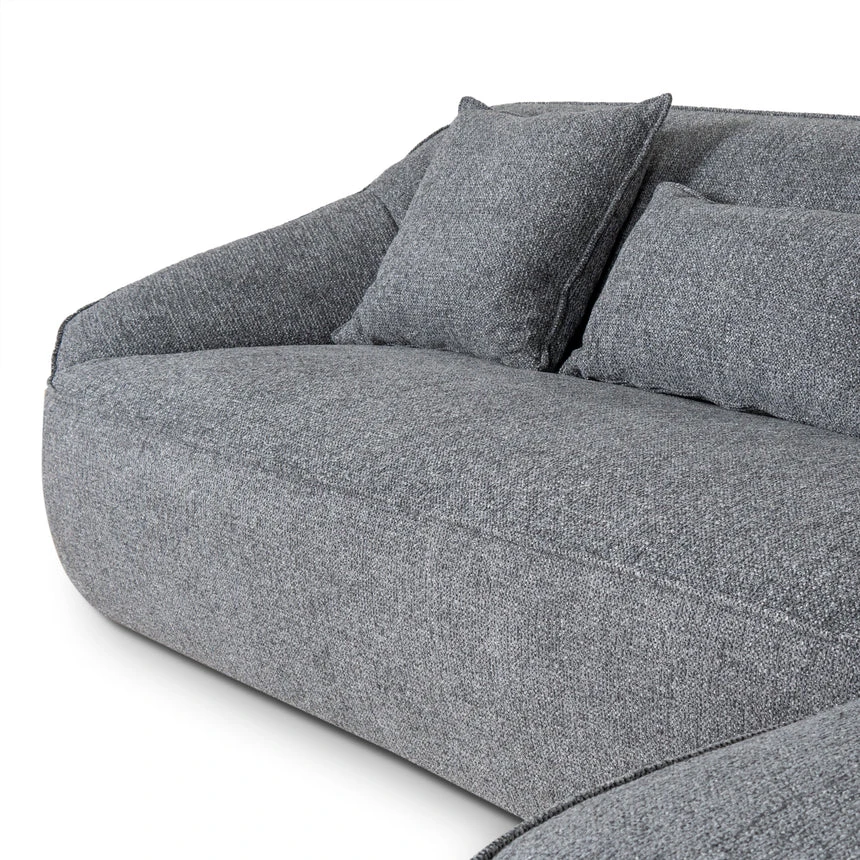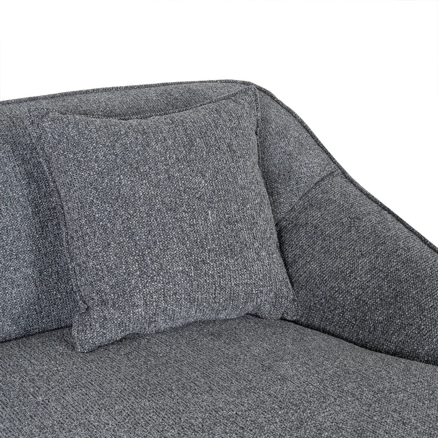 Coral Charcoal polyester upholstery Pine wood frame Soft-medium firmness Web and spring suspension Beech wood legs Foam filling Rounded edges and smooth curves Modern casual style Electric drill recommended for leg assembly Weight Capacity: 200 kg Minor assembly required