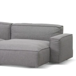 91% polyester and 9% acrylic fabric upholstery Plywood and solid wood frame Cushioned seats with square arms 3-seater right chaise design Anti-skid plastic legs with floor protectors Web-spring suspension Foam and fiber filling Suitable for commercial use 360kg weight capacity Product is fully assembled