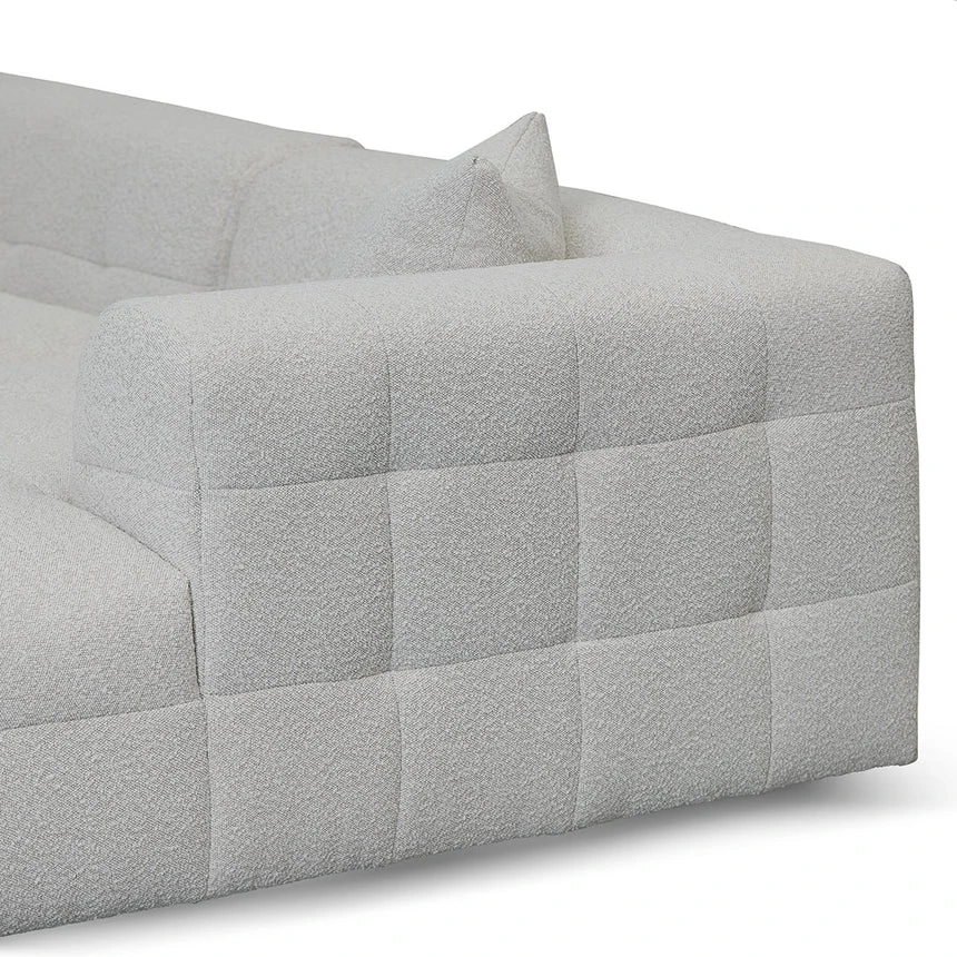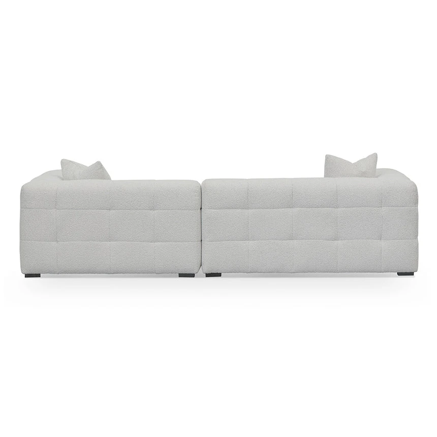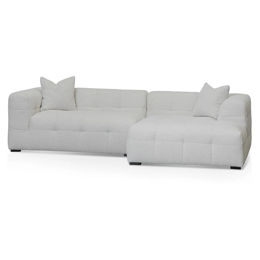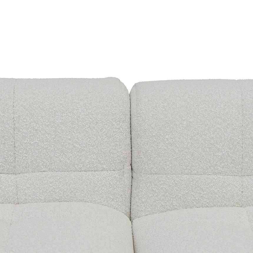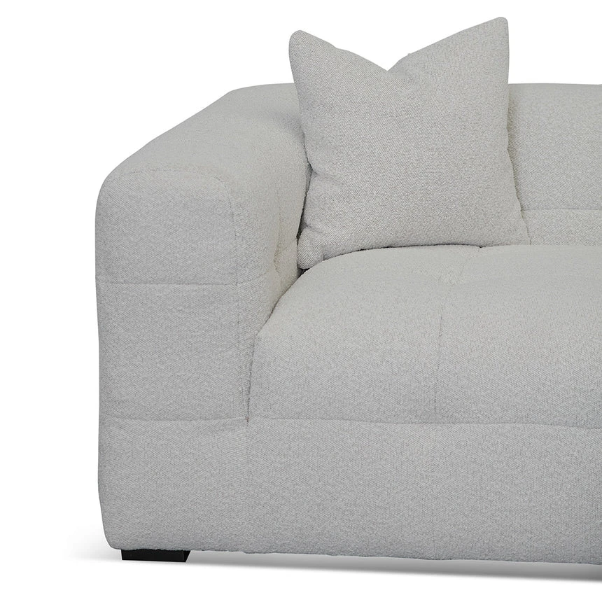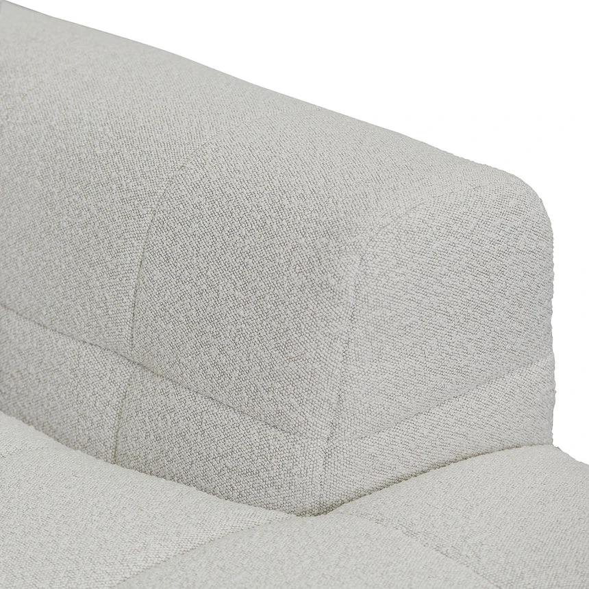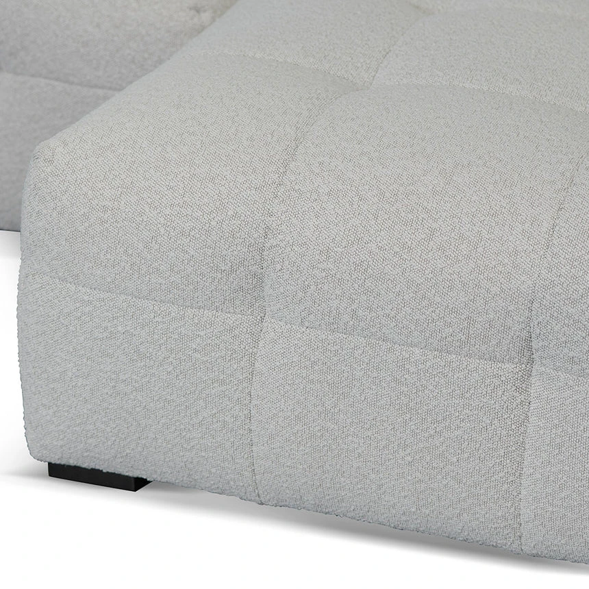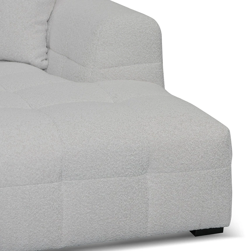 100% Polyester upholstery in grey finish Sturdy Pine wood frame Pine wood legs equipped with floor protectors Tight back and tight seat ideal for 3 people Right chaise formation with square arms Foam filling with web-spring suspension Product has soft-medium seat firmness Suitable for commercial use 500kg weight capacity Product is fully assembled Melbourne pick-up and delivery only