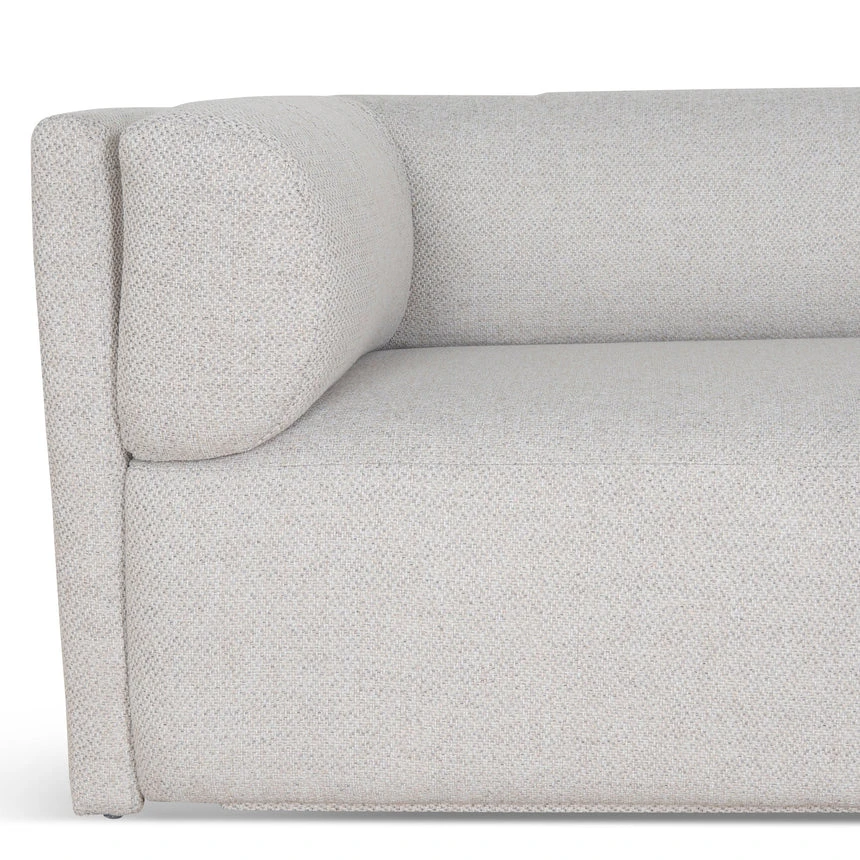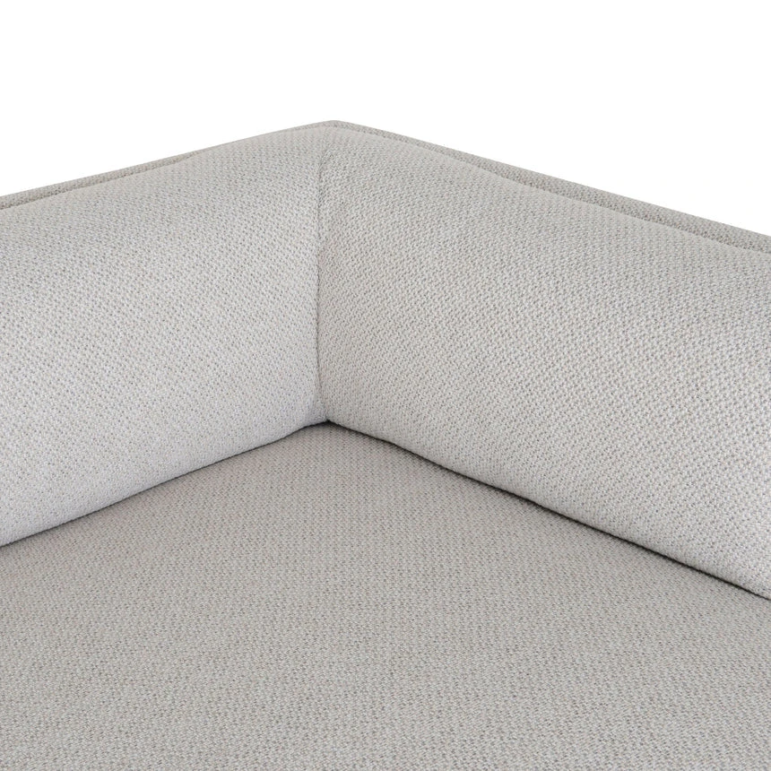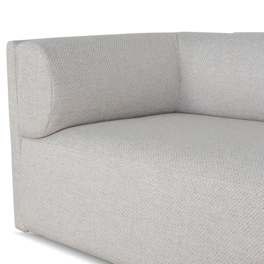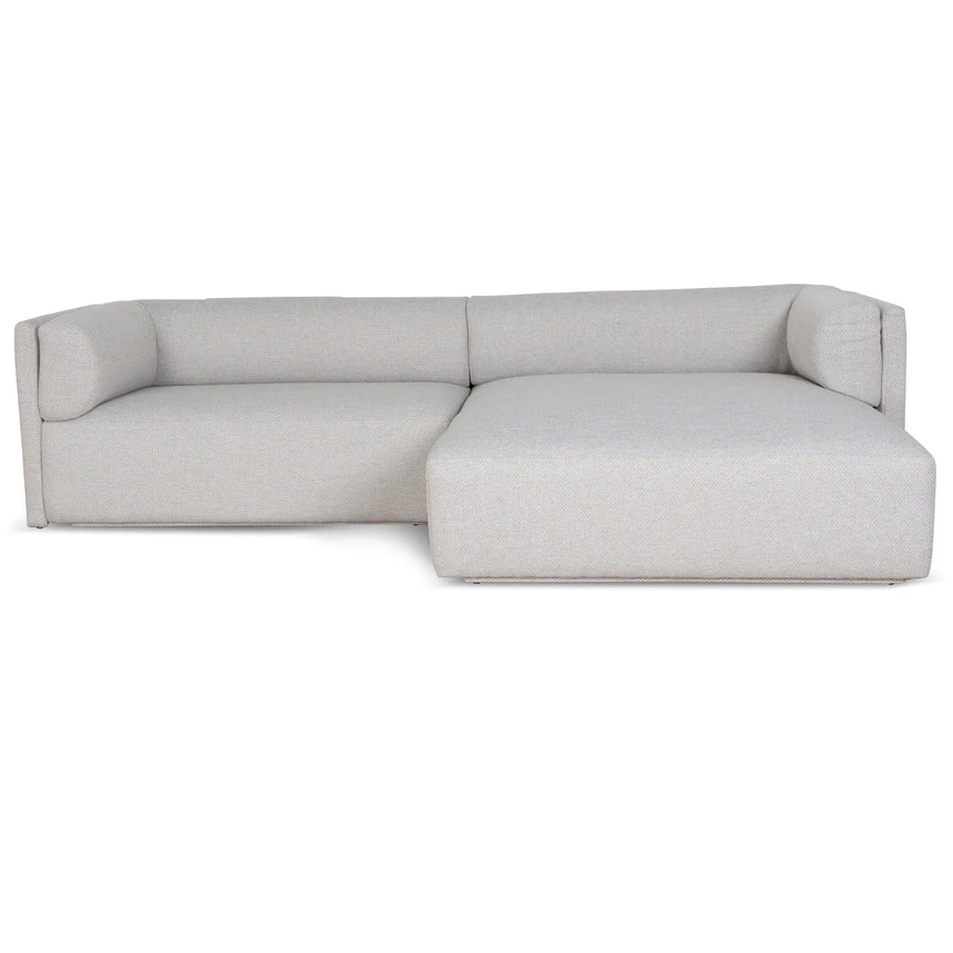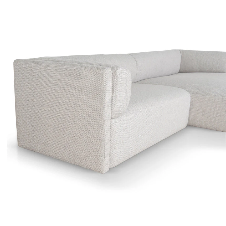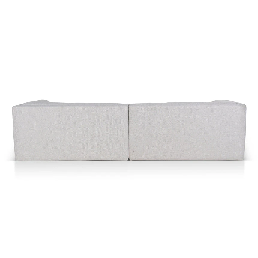 Polyester upholstered fabric Pinewood frame construction Durable plastic legs Soft-medium firmness Web and spring suspensions Luxe L-shaped chaise Foam fillings Weight Capacity: 700 kg Product requires two-person minor assembly