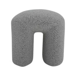 Fabric blend with 85% polyester & 15% acrylic Upholstered in pepper boucle Pine wood timber frame Flipped U-shaped design with a round seat 2x thick plastic side legs with floor protectors Foam filling with retained firmness Suitable for commercial use 100kg weight capacity Product is fully assembled