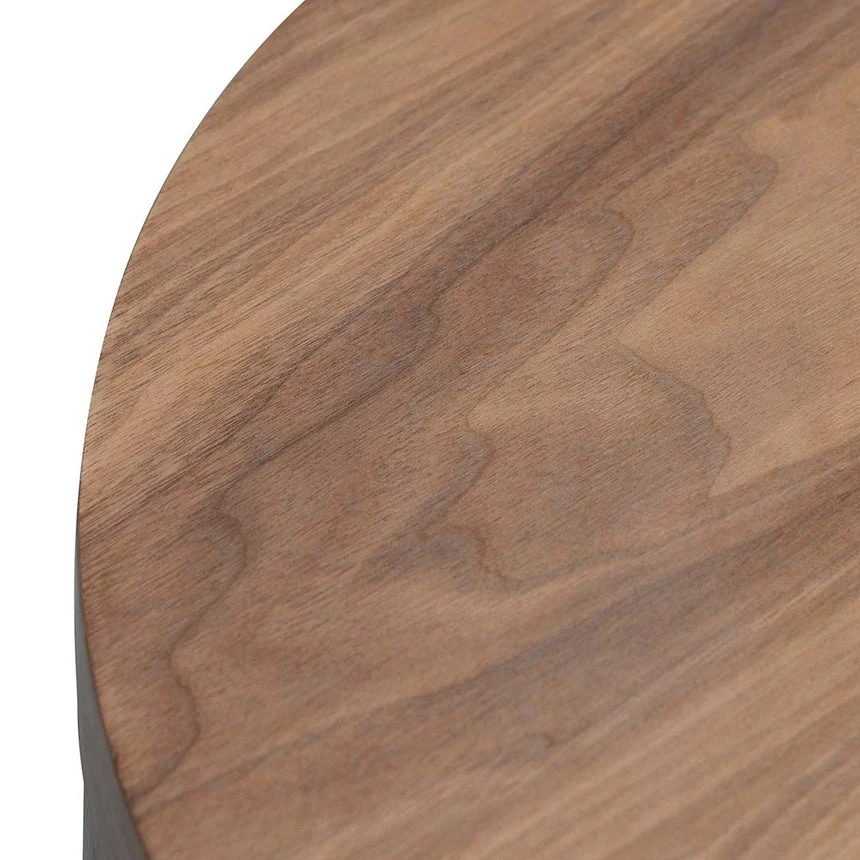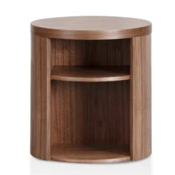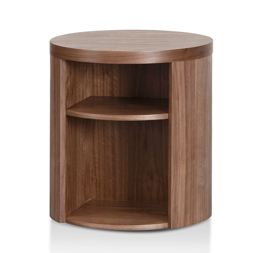 Engineered wood with walnut veneer Round contour with 2x shelves 15kg weight limit Suitable for commercial use Fully Assembled