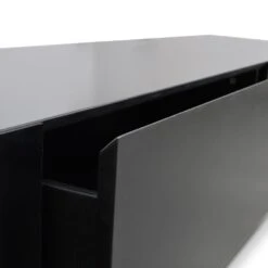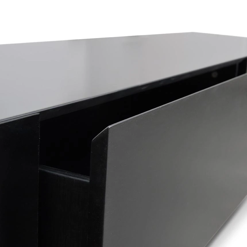 Constructed from a walnut timber veneer Storage component in a black matte gloss finish Two-man assembly required with furniture assembly experience Soft close drawers
