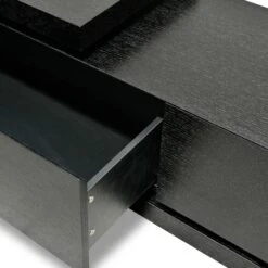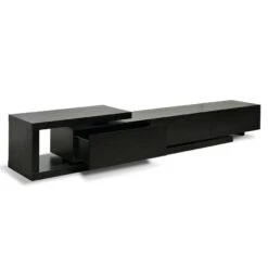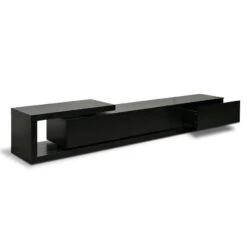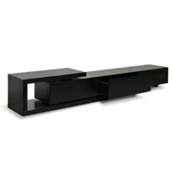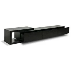 Features 3x soft-closing drawers and ample display space Convenient storage for entertainment gadgets and other belongings Movable accent panel constructed from timber veneer and complete in a black finish Storage compartments completed in a black matte finish Soft close drawers Note: Product requires two-man assembly and furniture assembly experience.