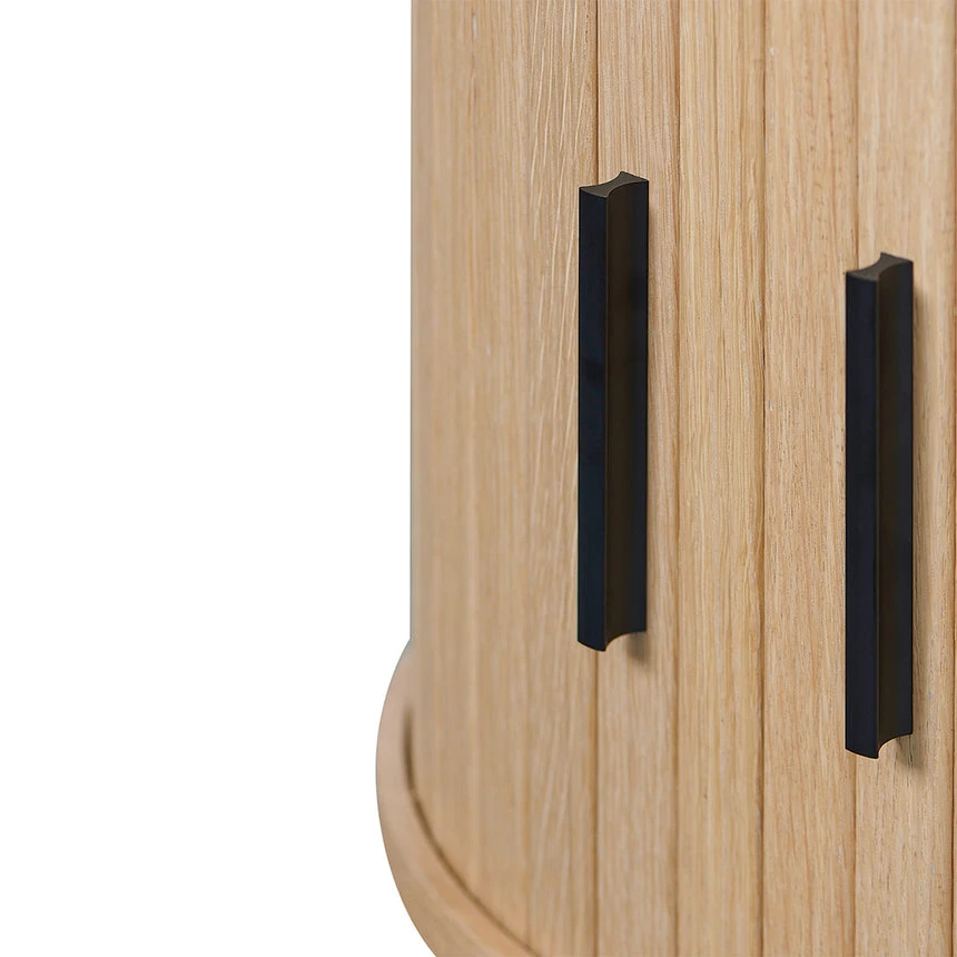 The side table features one adjustable shelf, allowing you to customize the storage space to fit your needs. The sliding doors with matte black handles add a touch of sophistication and make accessing your items easy. With a weight capacity of 80 kg, this side table is not only stylish but also functional.