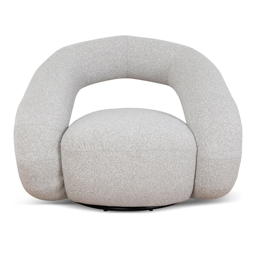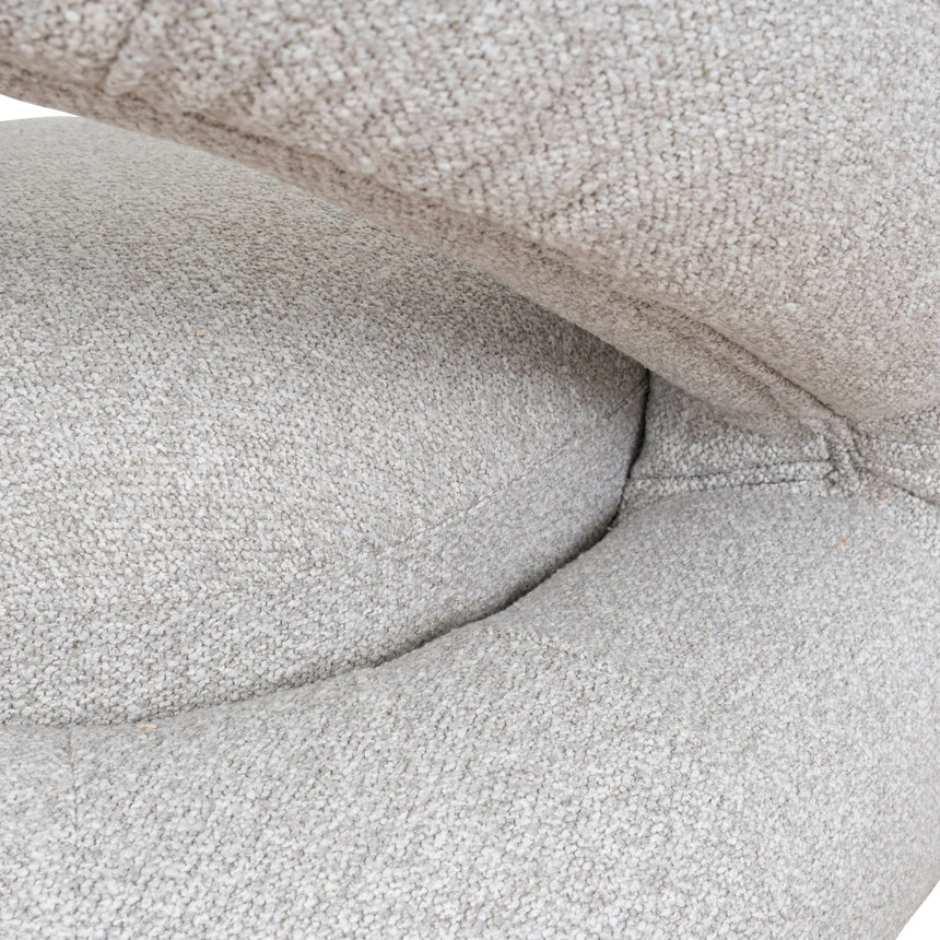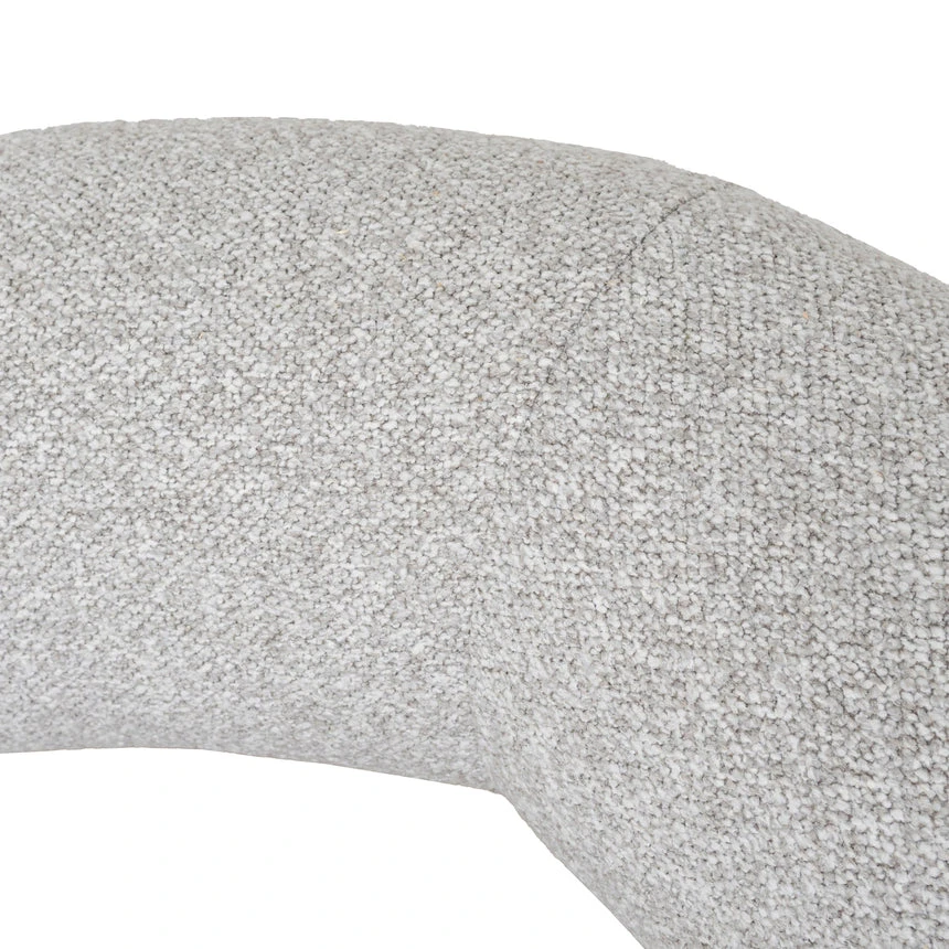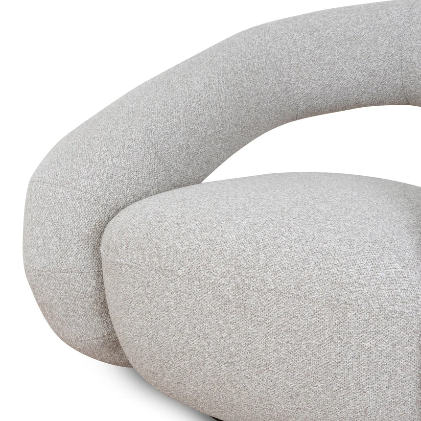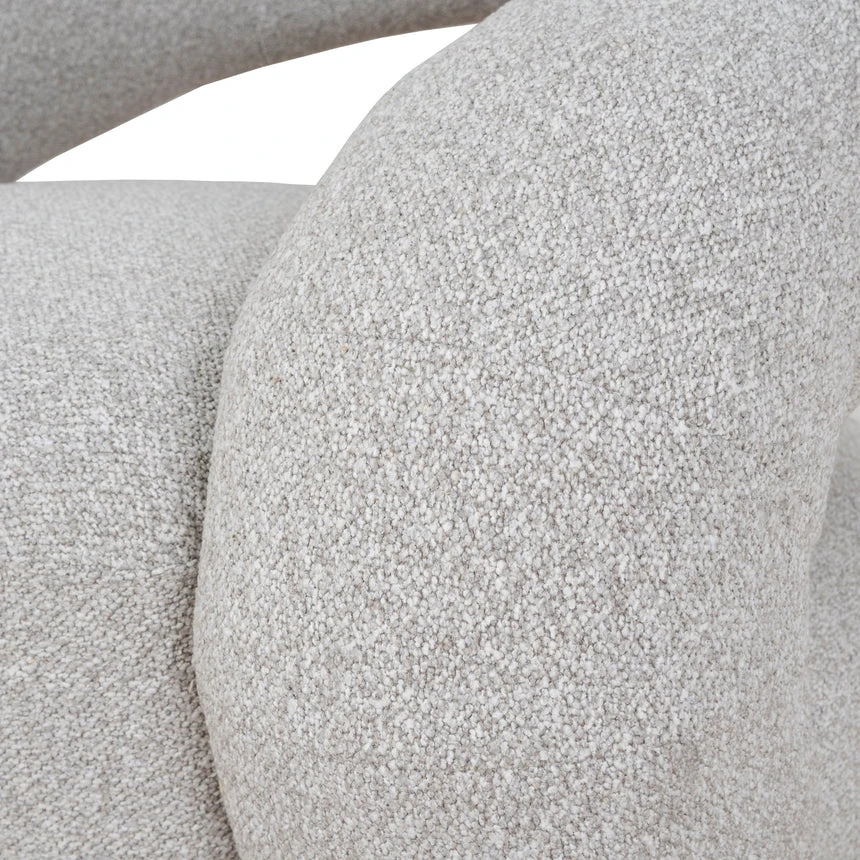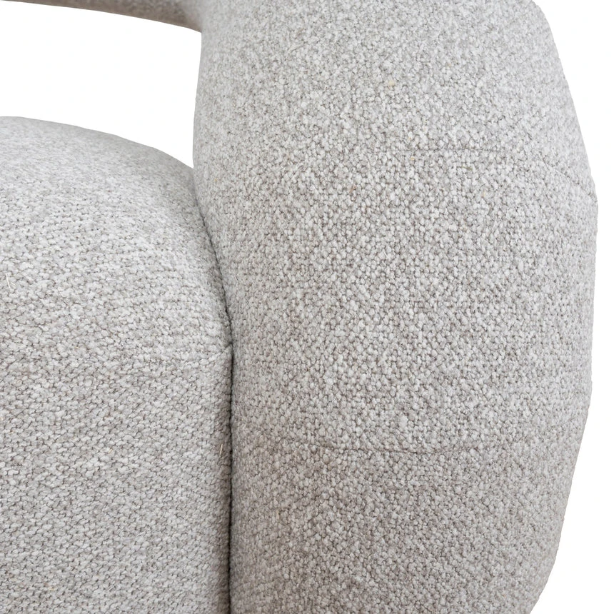 Clay grey polyester fabric upholstery Pinewood frame and legs construction Web and spring suspension Foam filling Looped arm and backrest design Soft seat firmness Striking artistic silhouette with bold curves Weight Capacity: 150 kg Product comes fully assembled
