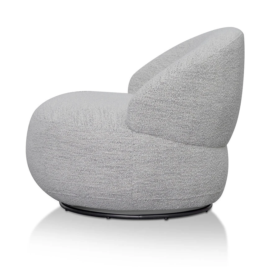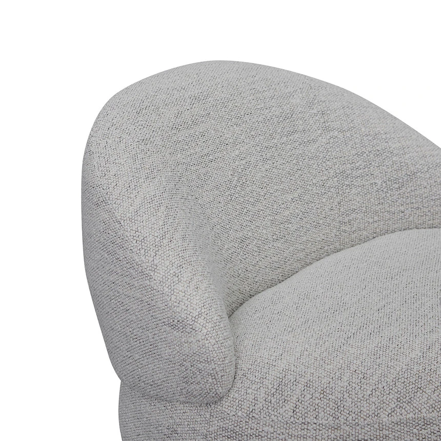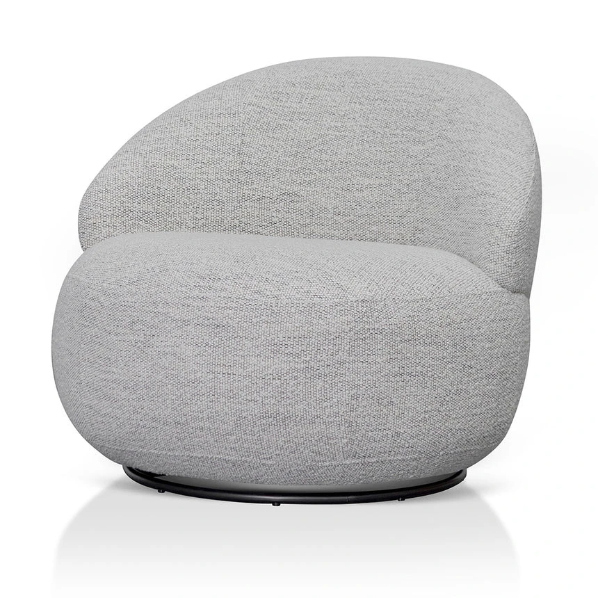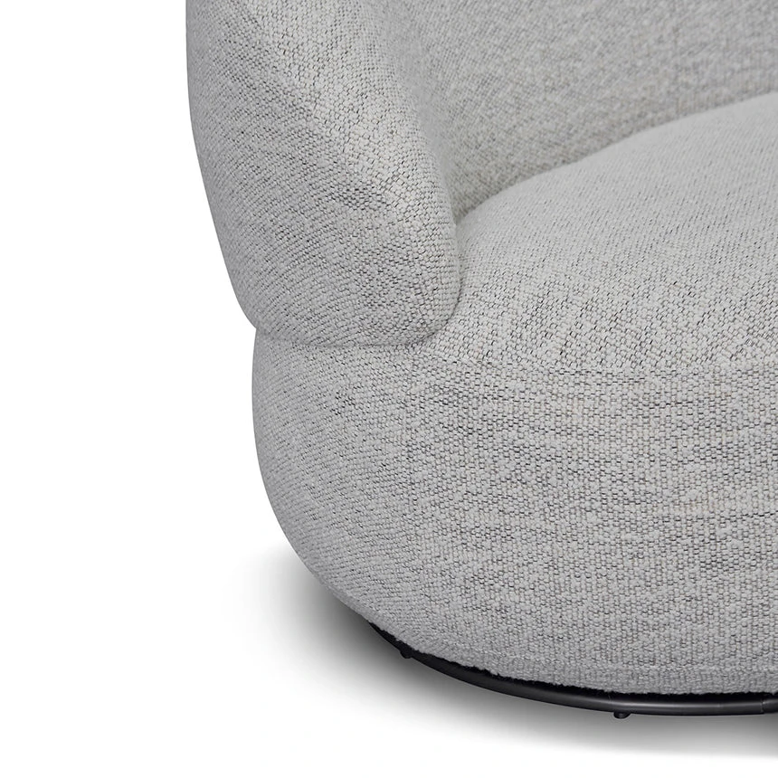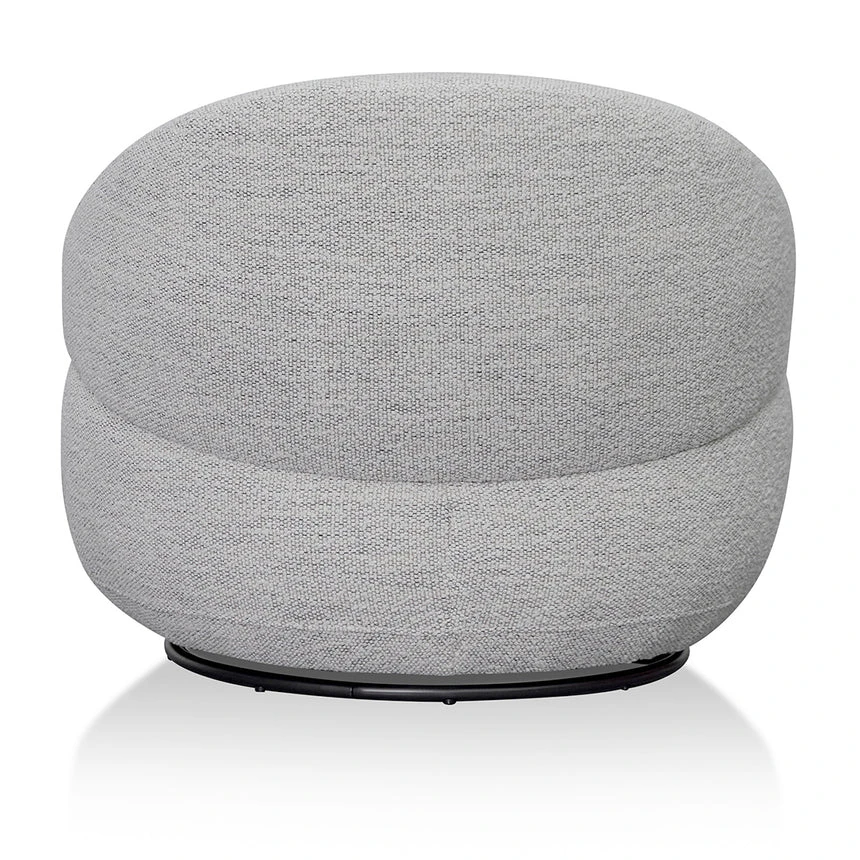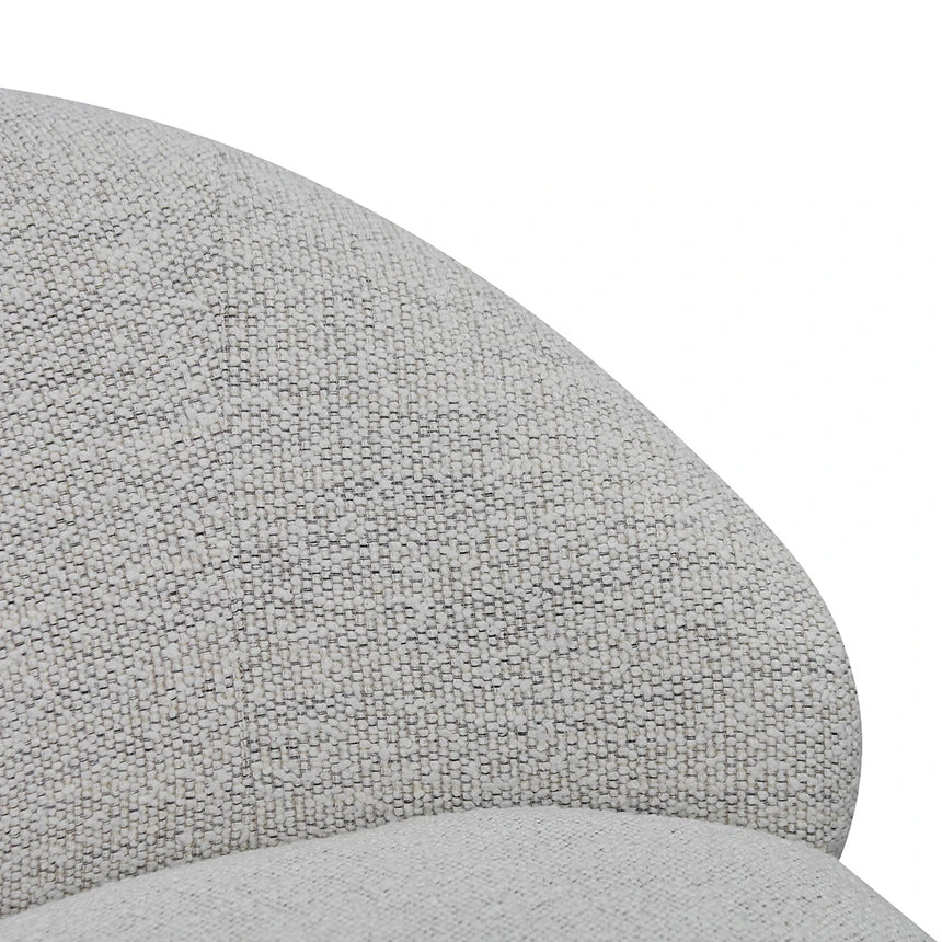 100% polyester upholstery in fog grey Plywood and solid wood frame Features a curved and a round seat 360-degree seamless swivel Anti-skid plastic legs with floor protectors Foam filling with web-spring suspension Suitable for commercial use 120kg weight capacity Product is fully assembled