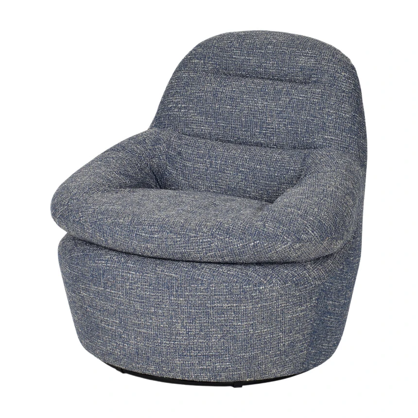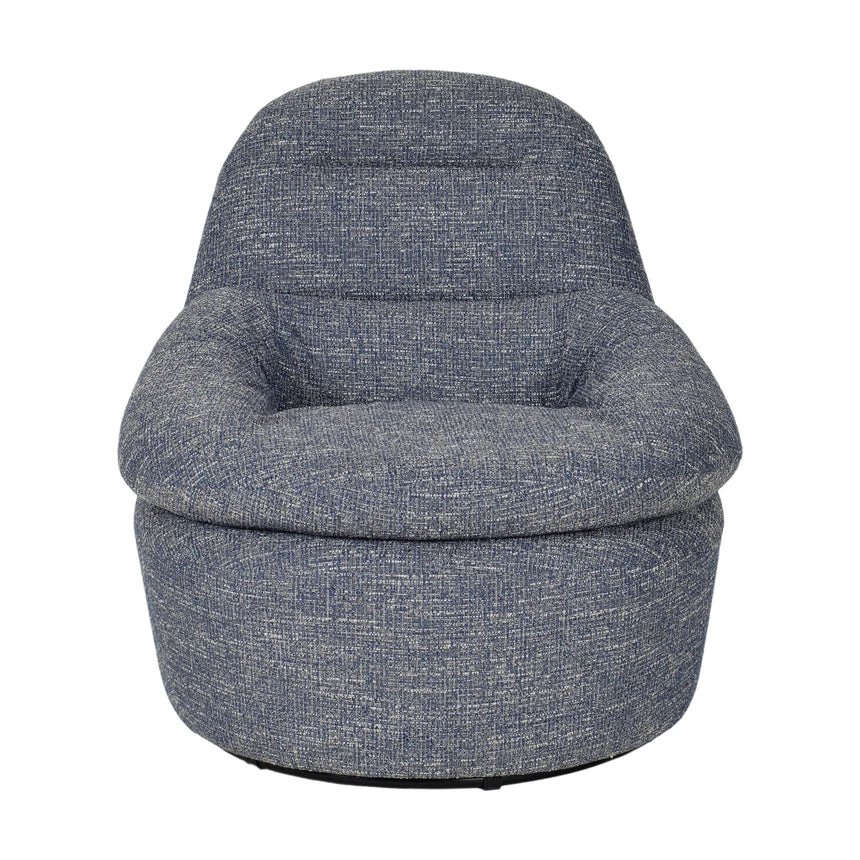 Prussian blue polyester upholstery Timber frame construction Web suspension Plywood legs Foam and bandage filling Soft seat firmness Organic sculptural form Ergonomic high backrest Weight Capacity: 150 kg Product comes fully assembled