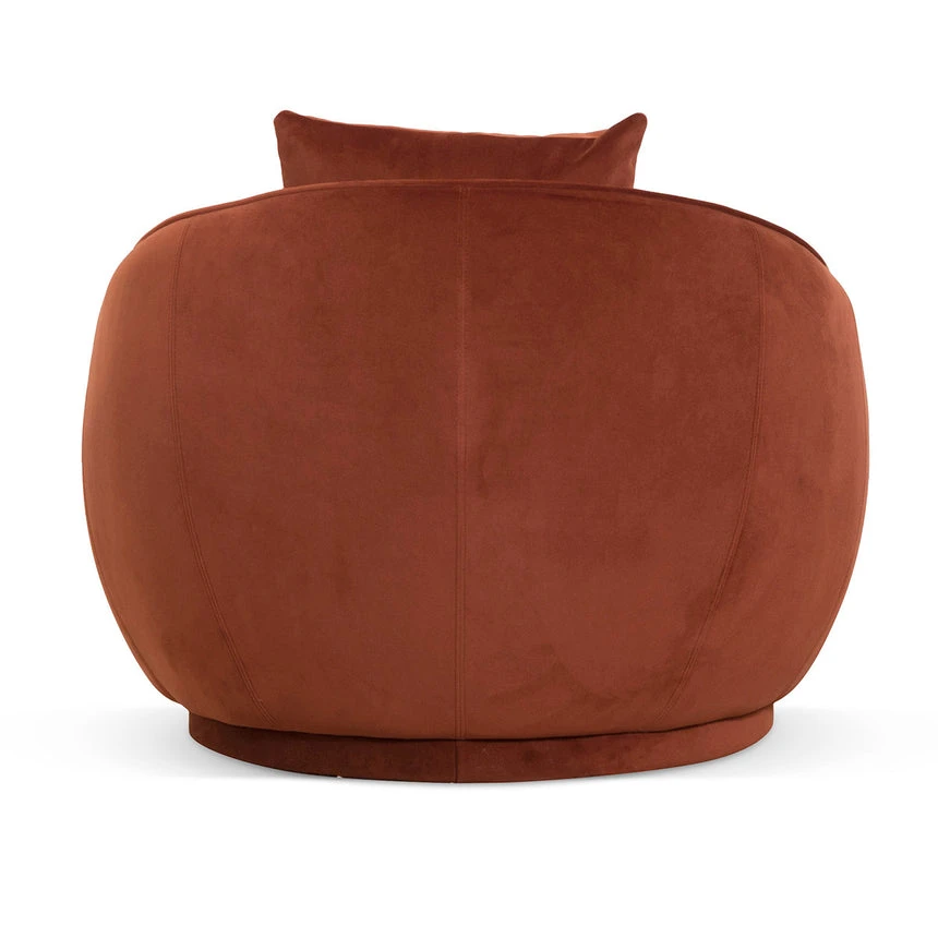 Upholstered in a 100% rustic brown polyester velvet fabric Constructed in a pinewood timber Foam filling with web and spring suspension Soft-medium seating firmness and low-line form 1x matching scatter cushions included Product comes fully assembled